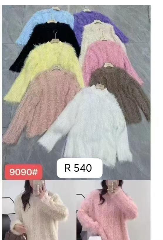 Imported China Bulk - Trendy Long Hair Fabric Mock Neck Winter Sweater | MOQ 10 pcs