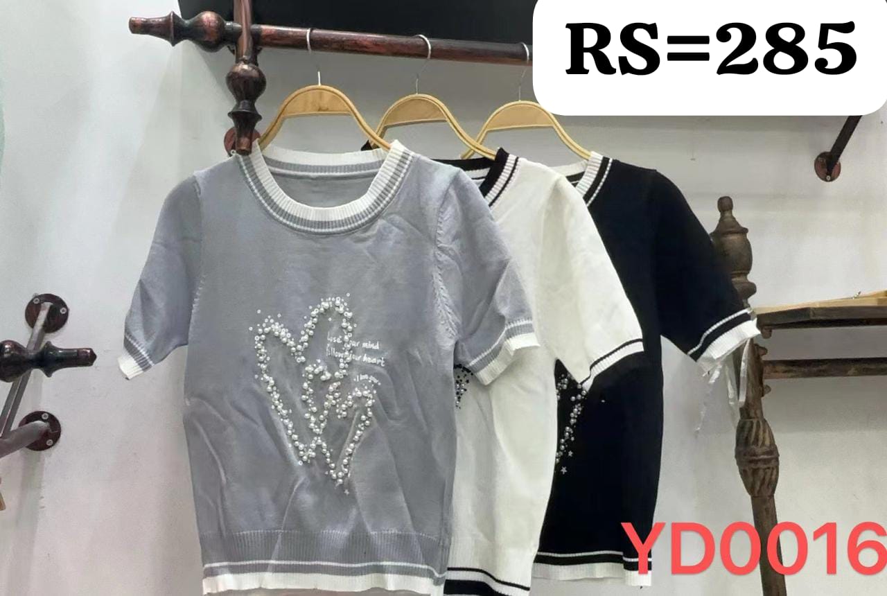 Imported Korean Embellished Heart Pearl Knit Top – Short Sleeve.