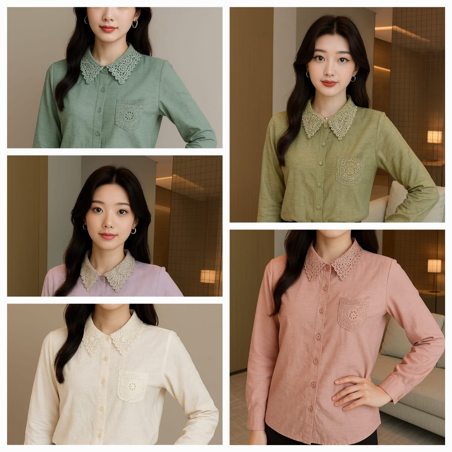 Zadine Fashion presents imported lace collared shirts in wholesale. Available in 4 color pack for retailers.